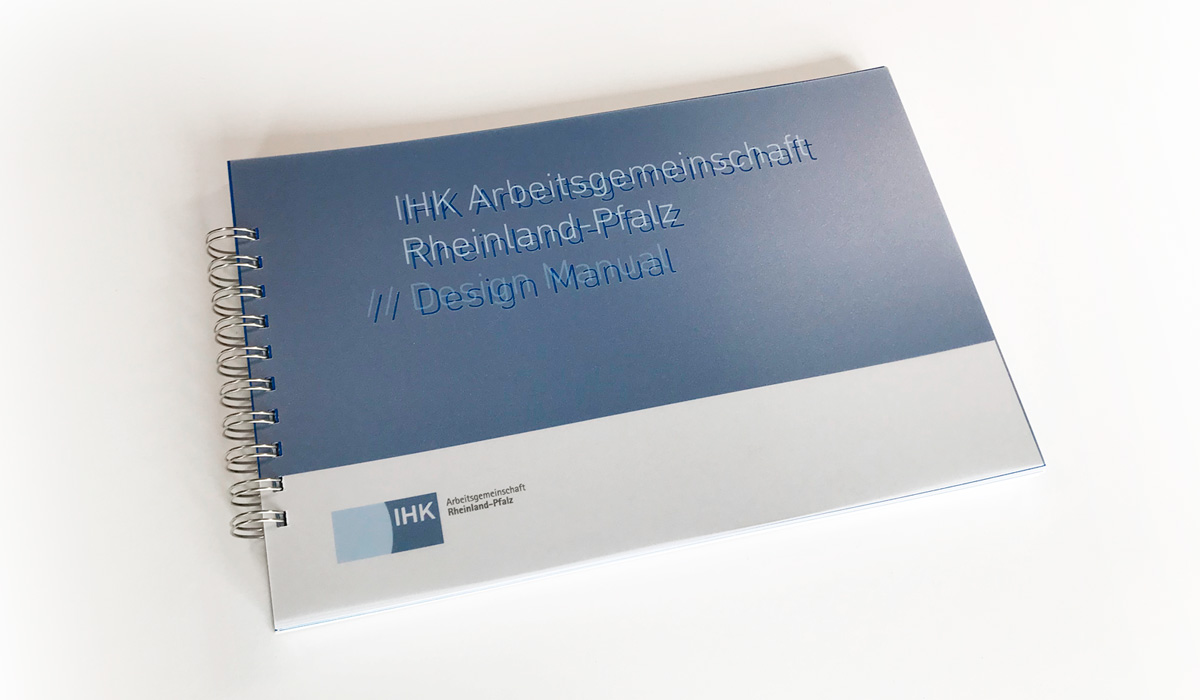 Zu diversen Themen publiziert die IHK-Arbeitsgemeinschaft Rheinland-Pfalz Broschüren in unterschiedlichem Umfang. Goossens & Kopatz wurde damit beauftragt, ein neues Corporate Design, eine neue Geschäftsausstattung und ein neues stringentes Design für Broschüren zu entwickeln und die Ergebnisse in einem Design-Manual festzuhalten.