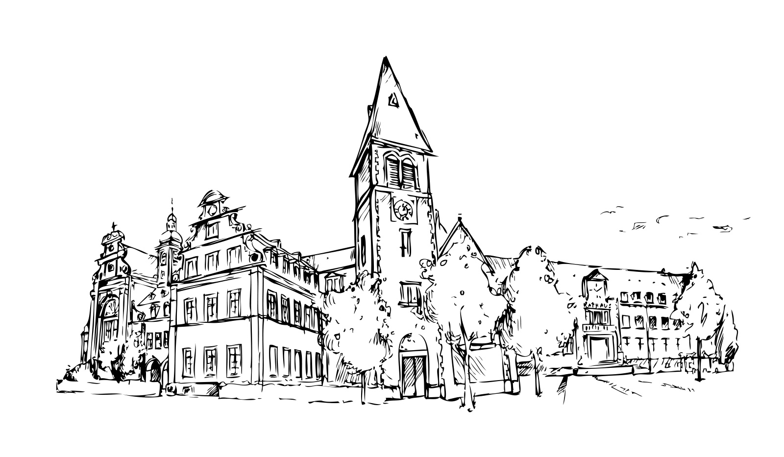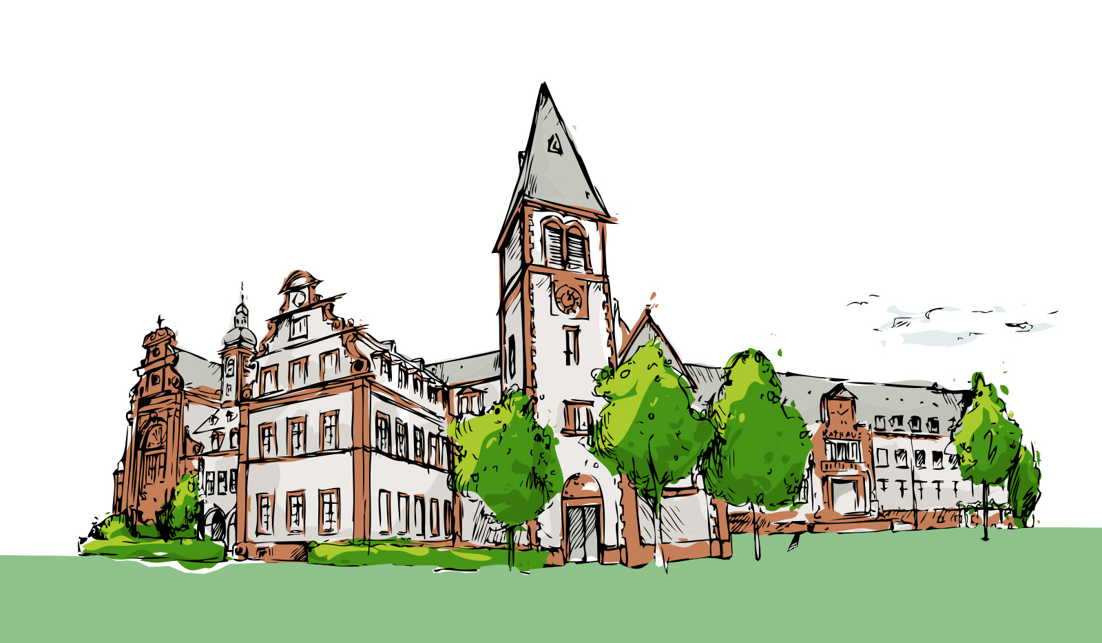 Zum Stadtjubiläum gestaltete Goossens & Kopatz eine Illustration als Symbiose aus den drei bekanntesten Gebäuden: Rathaus, Kloster Karthaus und Evangelische Kirche Konz-Karthaus.