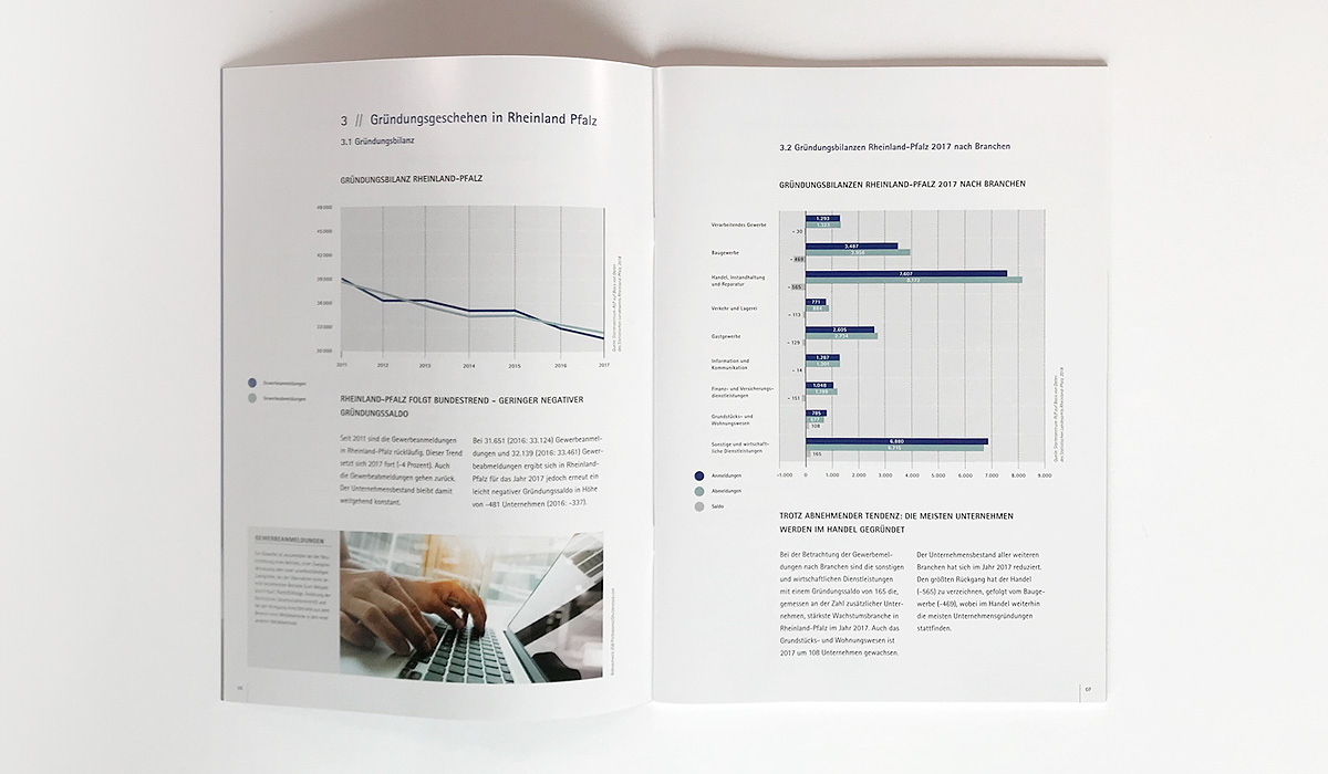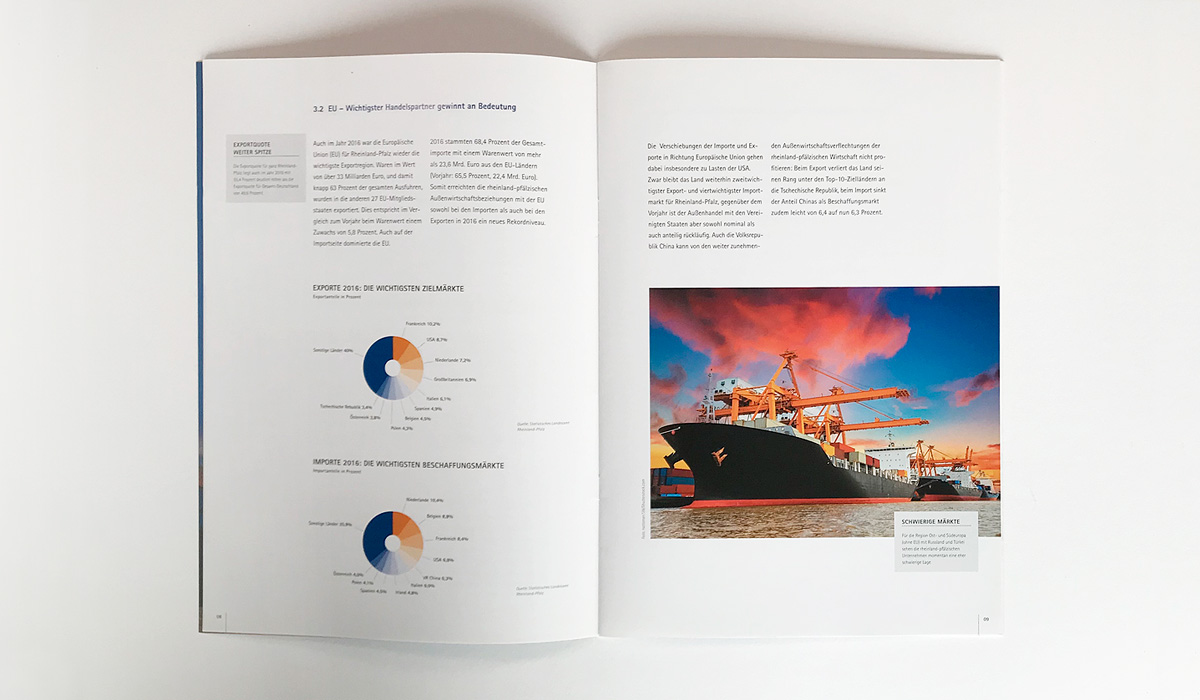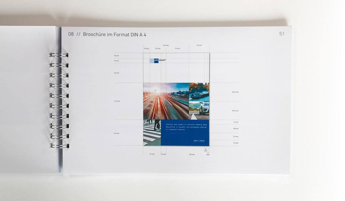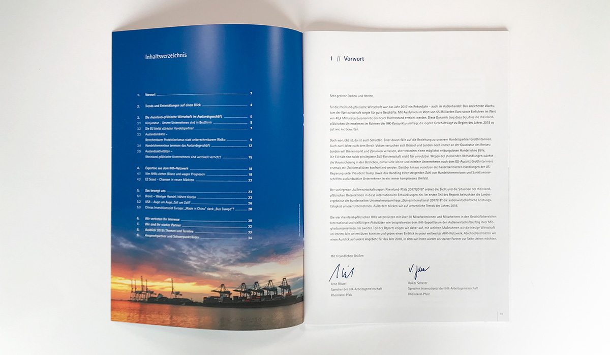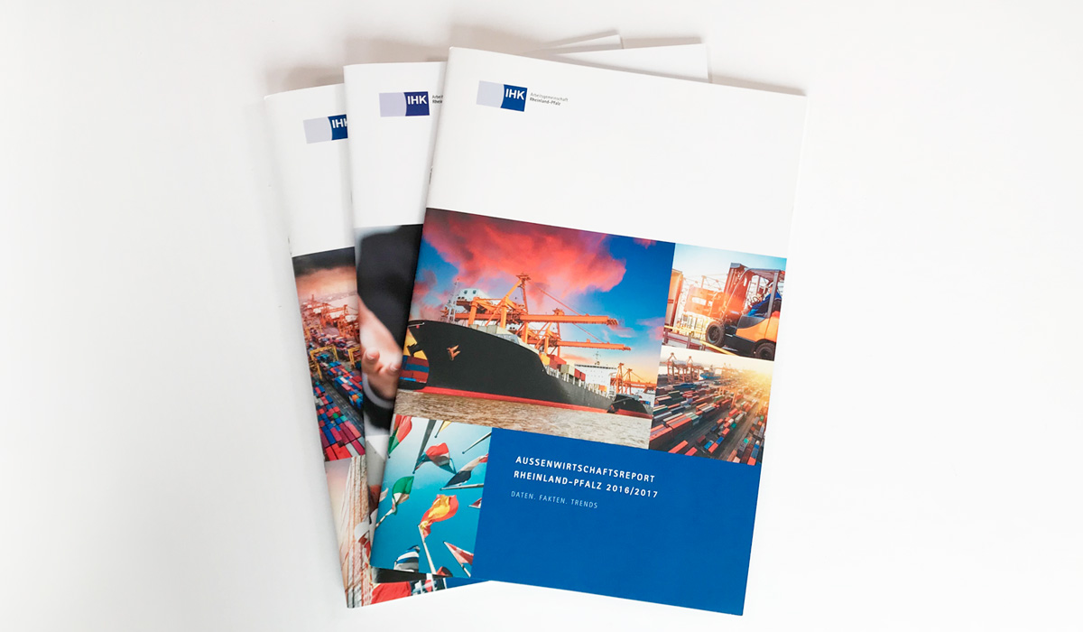 Zu diversen Themen publiziert die IHK-Arbeitsgemeinschaft Rheinland-Pfalz Broschüren in unterschiedlichem Umfang. Goossens & Kopatz wurde damit beauftragt, ein neues Corporate Design, eine neue Geschäftsausstattung und ein neues stringentes Design für Broschüren zu entwickeln und die Ergebnisse in einem Design-Manual festzuhalten.