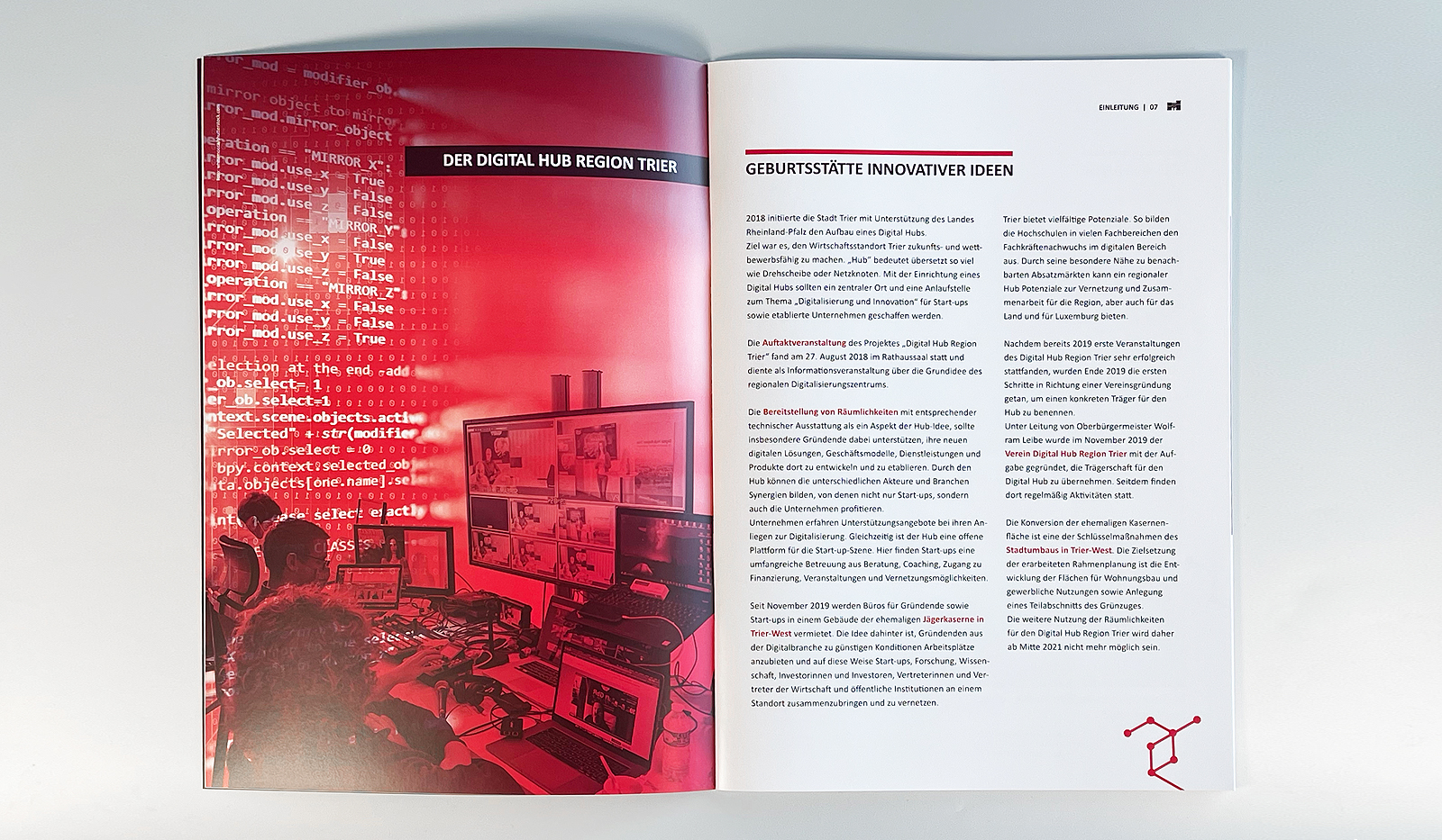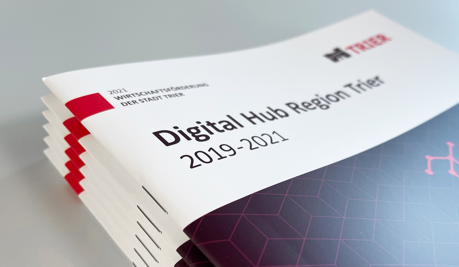 Wie bereits in den Jahren 2019 und 2020, konnte Goossens & Kopatz auch 2021 im Agenturpitch um die Gestaltung und Umsetzung des Jahresrückblicks "Digital Hub Region Trier" die Entscheidungsträger der Stadt Trier mit einem treffenden Konzept, stringenten Gestaltungsideen und einer außergewöhnlichen Gestaltung überzeugen.